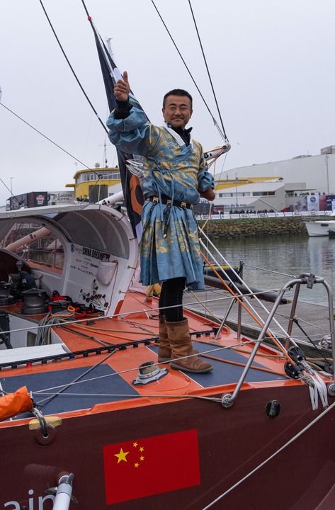 徐京坤在旺代環(huán)球帆船賽出發(fā)前進行準備工作