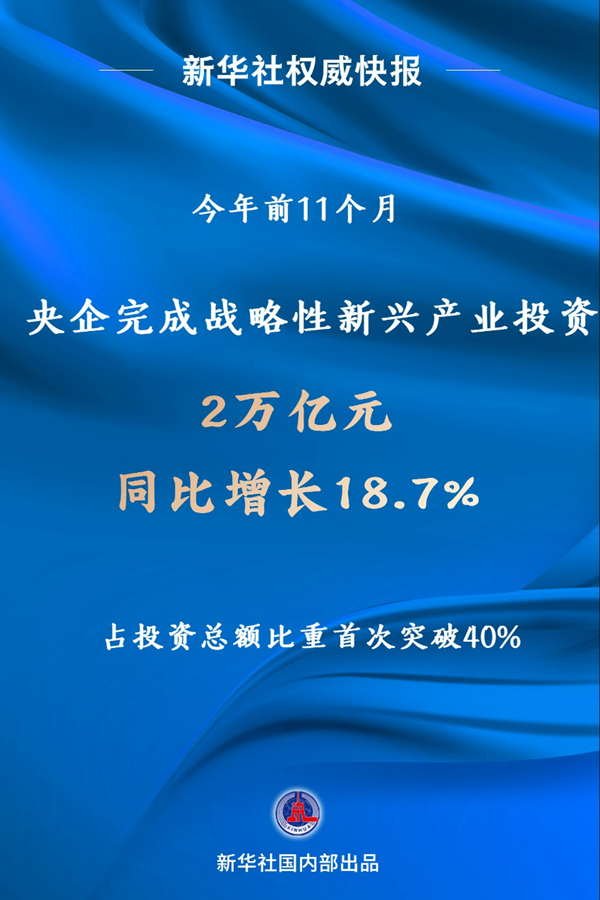今年以來,中央企業(yè)堅守實體經(jīng)濟,在新興產(chǎn)業(yè)的布局節(jié)奏加快,1至11月完成戰(zhàn)略性新興產(chǎn)業(yè)投資2萬億元,同比增長18.7%,占投資總額比重首次突破40%。