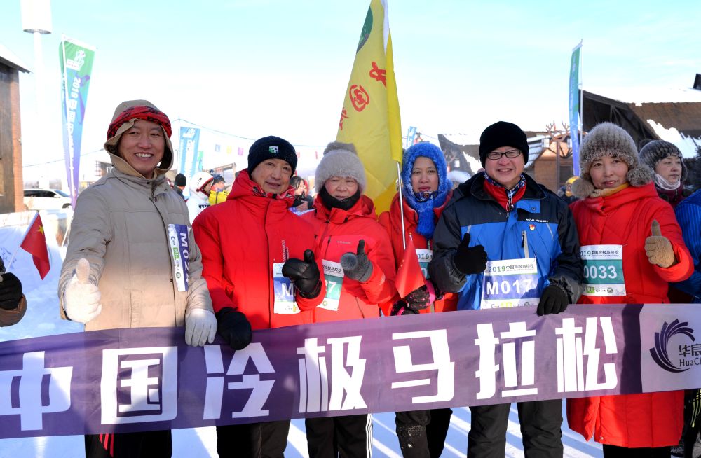 資料圖:2019年12月25日,參賽選手在冷極馬拉松開(kāi)跑前合影留念。新華社記者 徐欽 攝