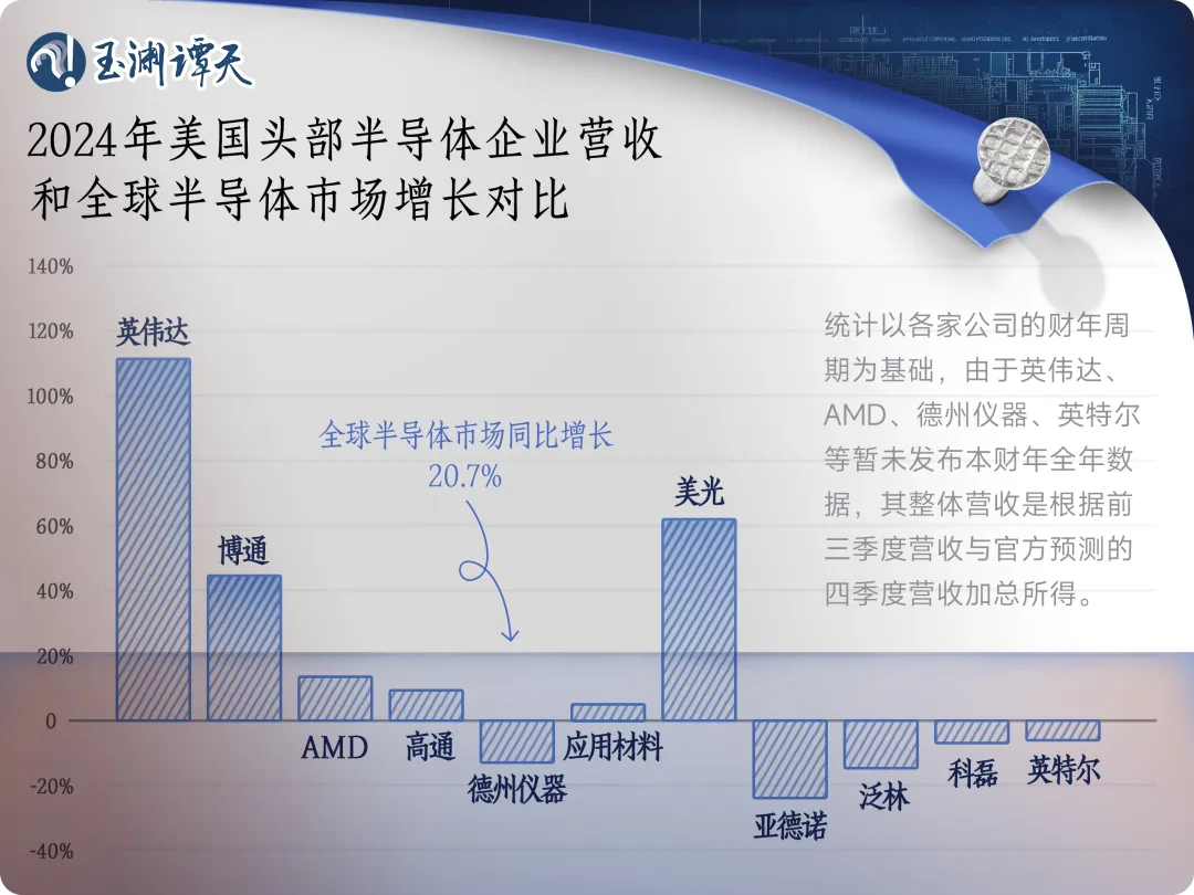 2024年,全球芯片市場都在回暖,預(yù)計同比增長20.7%。與此同時,英偉達(dá)2024年?duì)I收預(yù)計同比增長超100%,成為美國芯片市場增長最大的動力。