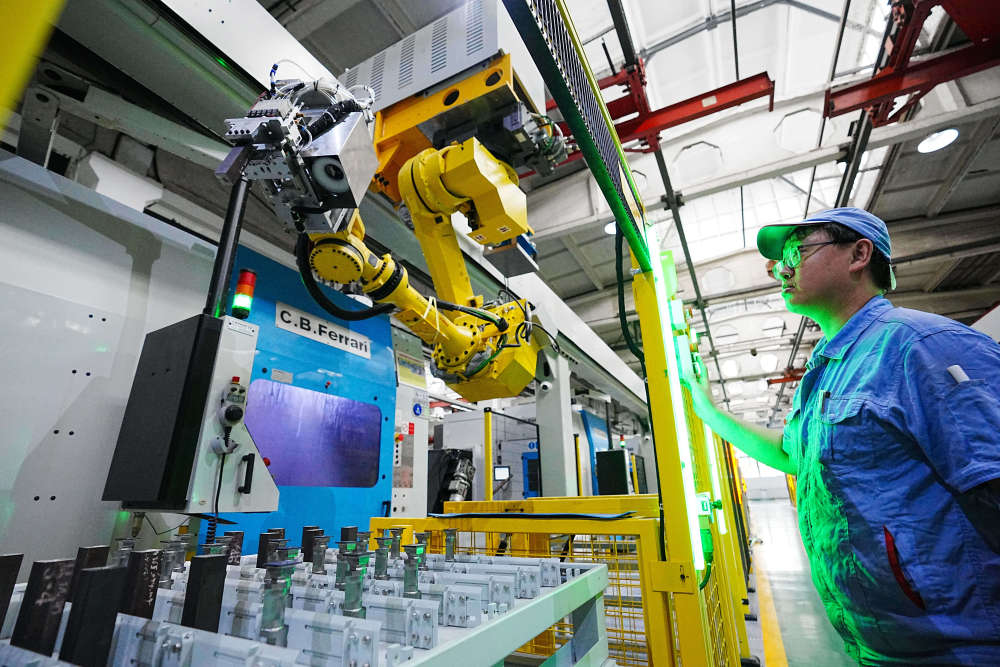 7月23日,在哈電集團(tuán)哈爾濱汽輪機(jī)廠有限責(zé)任公司葉片加工智能化車間,工作人員在觀察智能機(jī)械臂運(yùn)行情況。近年來(lái),東北三省加大力度推進(jìn)傳統(tǒng)制造業(yè)數(shù)字化改造,依靠科技創(chuàng)新“第一動(dòng)力”,聚焦“卡脖子”領(lǐng)域,讓傳統(tǒng)產(chǎn)業(yè)增“智”提“質(zhì)”。(新華社記者 王建威 攝)