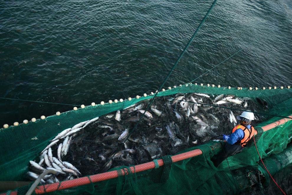 由于冷水魚對水質(zhì)要求高,公司還自主研發(fā)糞便收集器、水下清污器等環(huán)保設(shè)備?!氨3炙|(zhì)就保證了魚肉品質(zhì)?!饼堁笾r技術(shù)部部長馬小軍說。