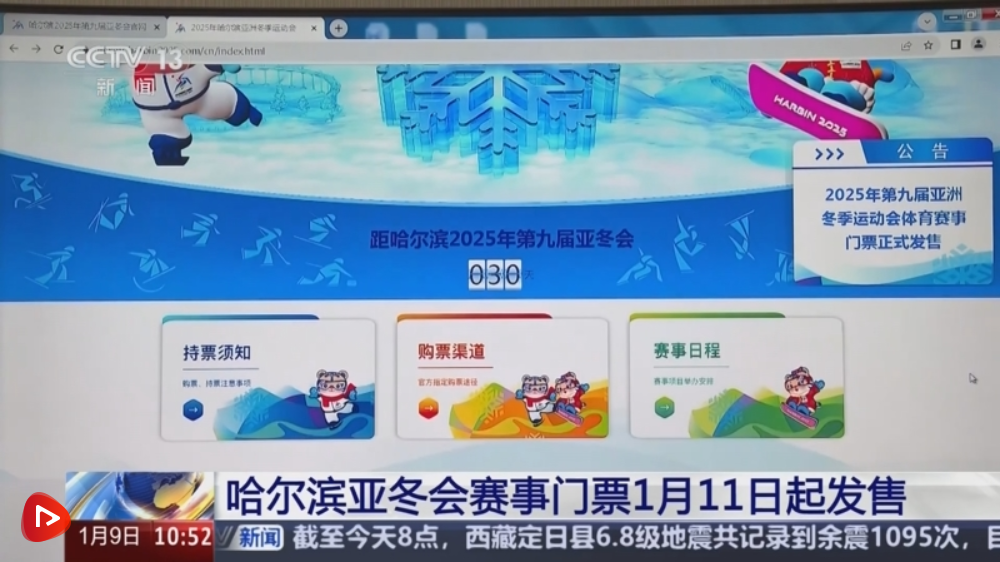 2025年第九屆亞洲冬季運(yùn)動(dòng)會(huì)體育賽事門票將于1月11日15:00啟動(dòng)公眾銷售,銷售的門票包括亞冬會(huì)全部冰上比賽項(xiàng)目。觀眾可以通過(guò)哈爾濱亞冬會(huì)官方網(wǎng)站或直接登錄哈爾濱亞冬會(huì)官方票務(wù)網(wǎng)站或官方票務(wù)小程序購(gòu)買門票。本屆亞冬會(huì)將于2月7日在哈爾濱國(guó)際會(huì)展體育中心舉行開(kāi)幕式,2月14日閉幕。