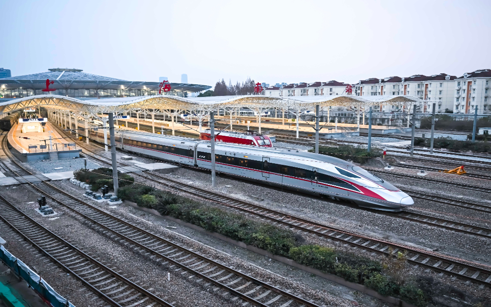 圖為2025年1月5日,上海南站首趟高鐵G1305次列車發(fā)車,上海南站正式邁入“高鐵時(shí)代”。新華社發(fā)(陳浩明攝)
