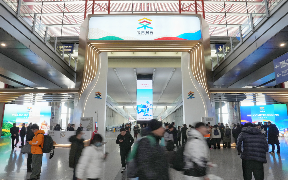 圖為2025年1月8日,在北京首都國(guó)際機(jī)場(chǎng)T3航站樓拍攝的“北京服務(wù)”機(jī)場(chǎng)服務(wù)點(diǎn)。從1月1日起,北京在首都國(guó)際機(jī)場(chǎng)和大興國(guó)際機(jī)場(chǎng)的國(guó)際到達(dá)出口設(shè)立“北京服務(wù)”機(jī)場(chǎng)服務(wù)點(diǎn),為來華、來京外籍人士提供金融、通訊、交通、文旅等四個(gè)主題的20余項(xiàng)高頻服務(wù),便利八方來客暢游中國(guó)。新華社發(fā) (鞠煥宗攝)