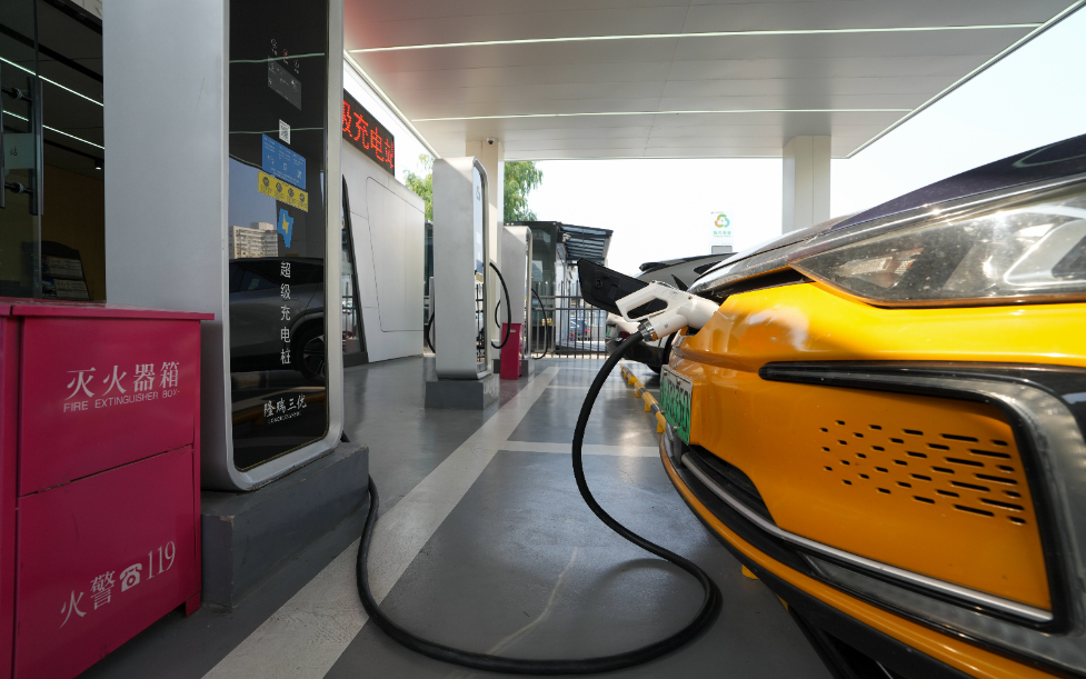 圖為2024年10月12日,在北京木樨園公交場(chǎng)站隆瑞三優(yōu)超級(jí)充電站內(nèi),新能源小客車在充電。新華社發(fā)(鞠煥宗 攝)