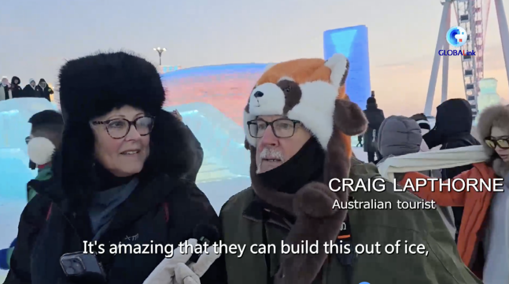 一旁的克雷格·拉普索恩頭戴俏皮卡通棉帽,同樣十分感慨。他驚嘆于能工巧匠們用冰雪構(gòu)筑如此繁多的美麗景觀,不可思議之感溢于言表。他還留意到哈爾濱冰雪大世界為成人與兒童精心配備冰上自行車等娛樂設(shè)施,深感此地適宜全家出游,讓每一位家庭成員都能投身冰雪運(yùn)動(dòng),暢享冰雪王國的歡樂氛圍。
