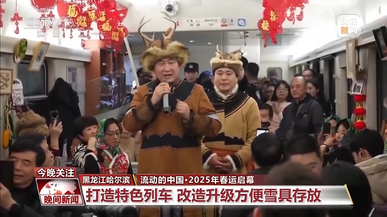 受冰雪旅游、春節(jié)返鄉(xiāng)等客流疊加的影響,春運(yùn)開(kāi)啟首日,黑龍江哈爾濱的鐵路運(yùn)輸一片繁忙。春運(yùn)期間,這里會(huì)繼續(xù)開(kāi)行非遺列車,為游客展示樺皮畫(huà)、面塑、刺繡等非遺內(nèi)容。讓游客在暢游冰雪的同時(shí),感受“非遺春節(jié)”。部分列車還進(jìn)行了改造升級(jí),把行李箱包的位置改為放置滑雪板等雪具用品的存放區(qū)域。