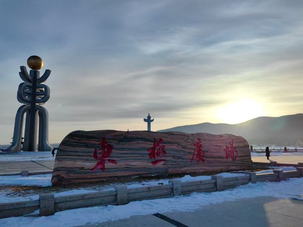 撫遠(yuǎn)市東極廣場(chǎng)日出。新華社記者 戴錦镕 攝