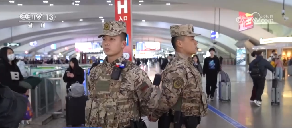 央視網(wǎng)消息:春運(yùn)期間,全國各地旅客出行顯著增加,擔(dān)負(fù)執(zhí)勤任務(wù)的武警部隊官兵堅守執(zhí)勤一線,科學(xué)進(jìn)行人員編組,在機(jī)場、高鐵等人流聚集處加強(qiáng)警戒、疏導(dǎo)巡邏,為旅客安全出行保駕護(hù)航。
