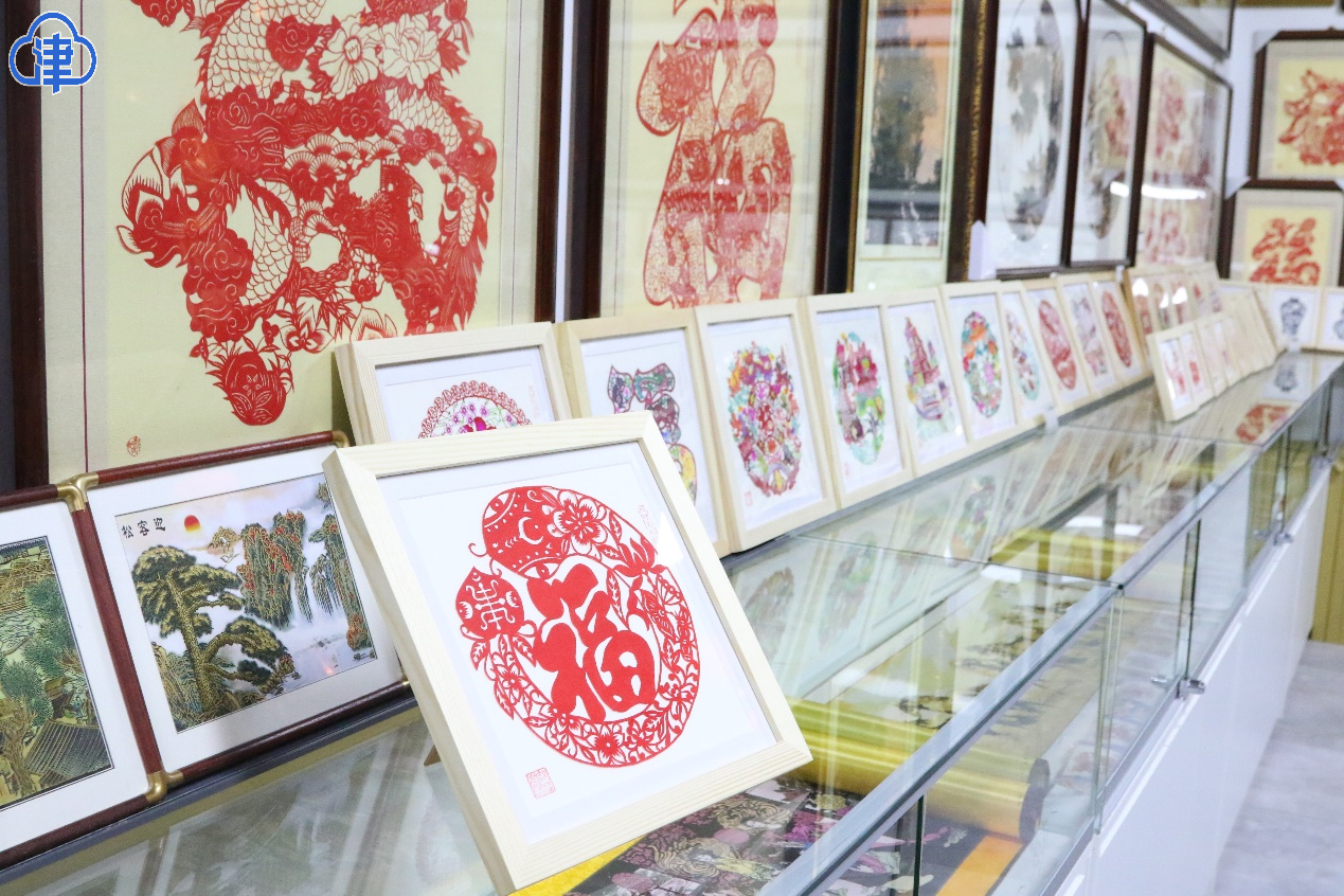 在戲樓對(duì)面,楊柳青剪紙世家第四代傳人,郝桂芬的剪紙鋪吸引了眾多游客的駐足。郝桂芬既是店鋪的“當(dāng)家人”,也是非遺剪紙項(xiàng)目的代表性傳承人。楊柳青剪紙的技法,既需要用北方剪刀剪出輪廓,又需要用南方刻刀雕飾細(xì)節(jié)。郝桂芬的獨(dú)門絕技——染色剪紙,是先用白紙剪出樣式,再用楊柳青年畫的技法上色。她的剪紙作品包括花鳥魚蟲、神話故事、喜慶吉祥圖案等,深受游客喜愛。在這里,游客們不僅可以購(gòu)買到精美的剪紙作品,還能在學(xué)習(xí)體驗(yàn)剪紙技法,感受指尖上的古老藝術(shù)。