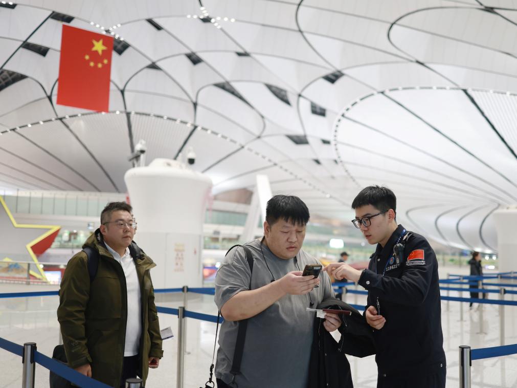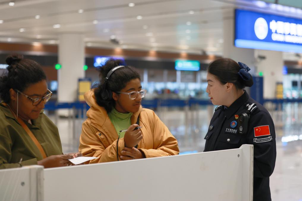 2024年12月17日起,過(guò)境免簽外國(guó)人停留時(shí)間延長(zhǎng)為240小時(shí)。大興機(jī)場(chǎng)邊檢站進(jìn)一步優(yōu)化提升通關(guān)體驗(yàn),率先實(shí)現(xiàn)同步辦理臨時(shí)入境許可、邊檢入境手續(xù)的“一站式”服務(wù),旅客無(wú)需二次排隊(duì)。