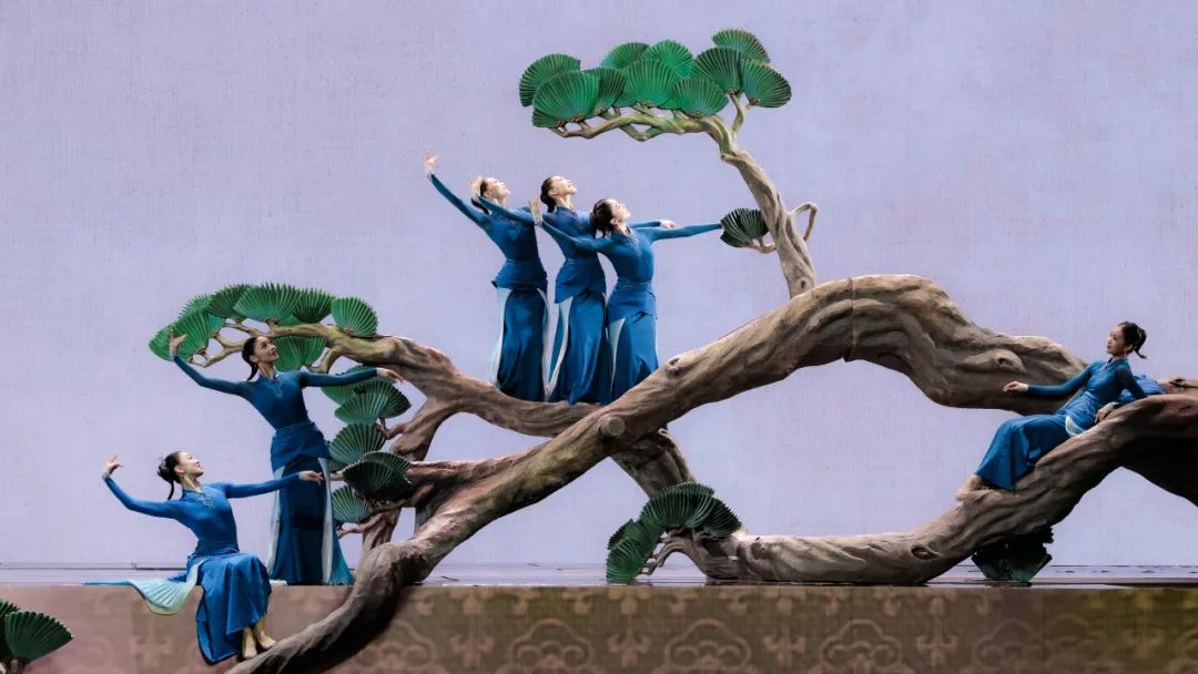 當(dāng)舞臺變成一方宋畫尺牘,背景成為留白氤氳的宣紙,舞者化作工筆描摹的墨痕,橫軸豎幔間,十只報春“喜鵲”從古卷中躍然而出。