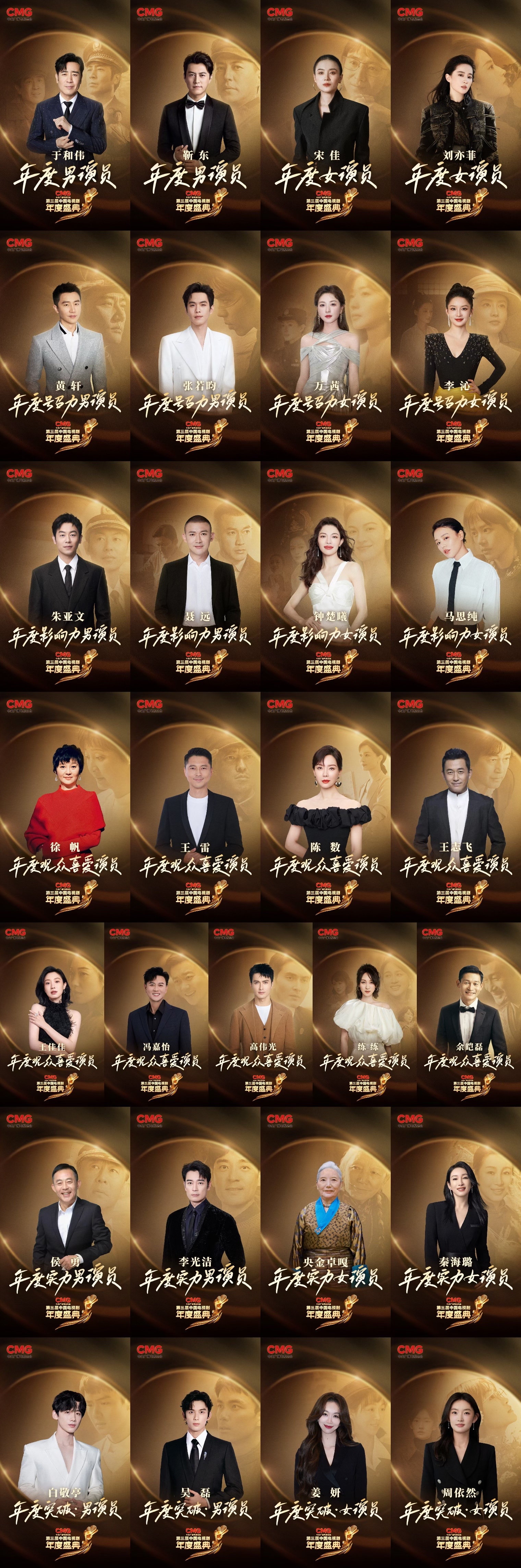 憑借深入人心的熒屏形象,演員于和偉、靳東,宋佳、劉亦菲贏得了觀眾和行業(yè)的高度認(rèn)可,分別獲得“年度男演員”“年度女演員”榮譽(yù);頗具“觀眾緣”的黃軒、張若昀,萬(wàn)茜、李沁,分別獲得“年度號(hào)召力男演員”“年度號(hào)召力女演員”榮譽(yù);朱亞文、聶遠(yuǎn),鐘楚曦、馬思純以細(xì)膩的人物刻畫(huà)喚起觀眾的廣泛共鳴,分別獲得“年度影響力男演員” “年度影響力女演員”榮譽(yù);塑造出生動(dòng)鮮活角色形象的徐帆、王雷、陳數(shù)、王志飛、王佳佳、馮嘉怡、高偉光、練練、余皚磊,獲得“年度觀眾喜愛(ài)演員”榮譽(yù);侯勇、李光潔,央金卓嘎、秦海璐以不著痕跡、潤(rùn)物無(wú)聲的表演,分別獲得“年度實(shí)力男演員”“年度實(shí)力女演員”榮譽(yù);不斷探索表演邊界的白敬亭、吳磊,姜妍、周依然,分別獲得“年度突破·男演員”“年度突破·女演員”榮譽(yù)。