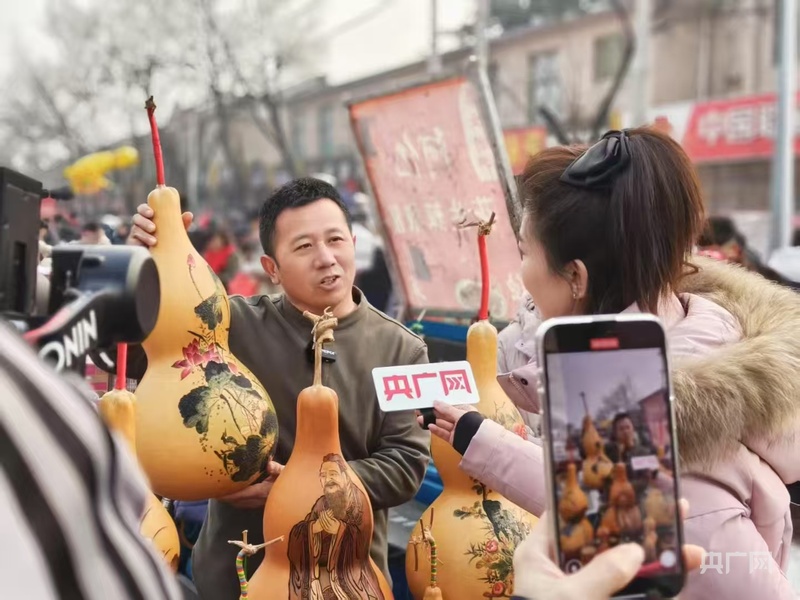 在旁邊的友誼葫蘆攤位前,形態(tài)各異、制作精致的葫蘆制品吸引了不少村民駐足觀看。山東省級非遺項(xiàng)目章丘葫蘆雕刻代表性傳承人馬友誼表示,這些葫蘆都是手工制作,每一個(gè)都有其獨(dú)特的寓意和故事,有些還登上國際舞臺進(jìn)行展示。