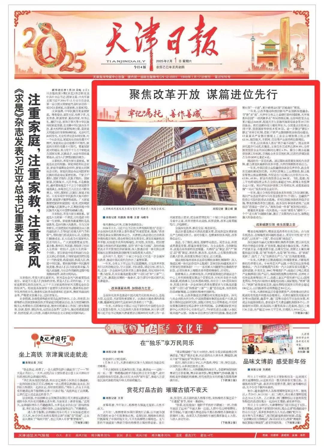 一年來(lái),天津堅(jiān)定不移以習(xí)近平新時(shí)代中國(guó)特色社會(huì)主義思想為指導(dǎo),大力弘揚(yáng)偉大改革開放精神,深入學(xué)習(xí)貫徹習(xí)近平總書記視察天津重要講話精神和對(duì)天津工作一系列重要指示要求,把全面貫徹黨的二十屆三中全會(huì)精神作為重中之重,改革舉措串點(diǎn)成線、積厚成勢(shì),改革之路勇毅篤行、步穩(wěn)蹄疾。