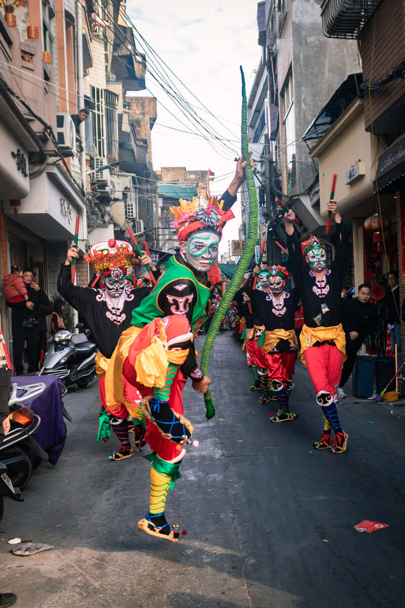 即便一直以松散的形式存在,甲子英歌憑著小鎮(zhèn)人的熱情和情懷,在唱念做打、武術(shù)臉譜等多個(gè)行當(dāng)傳了一代又一代,師傅傳徒弟、父傳子。