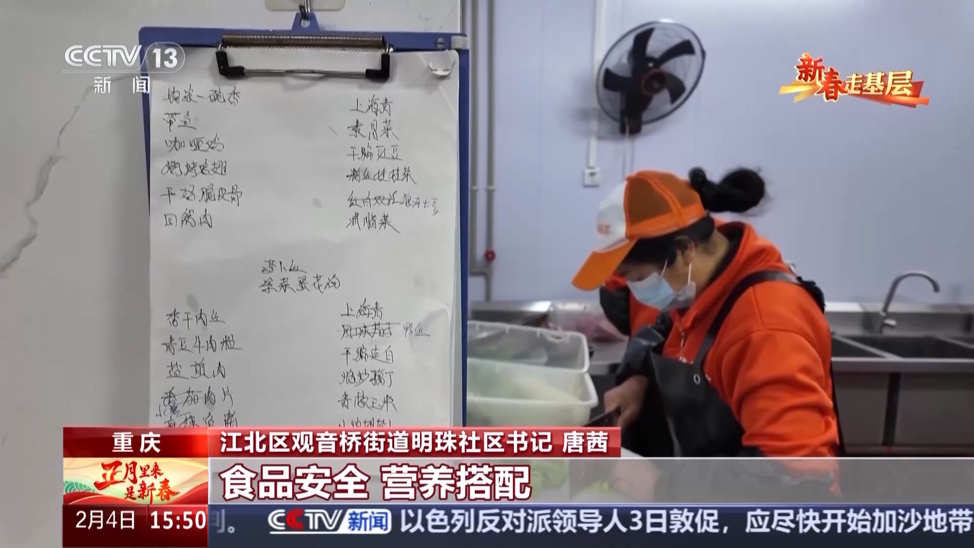 江北區(qū)觀音橋街道明珠社區(qū)書記 唐茜:要解決一個能夠辦食堂的一個地方,這是一個硬件上的問題。第二個就是誰來辦,首先我們提出的第一個就是要能夠滿足咱們這邊老人對高品質生活的要求。食品安全、營養(yǎng)搭配、健康我們要排在第一。既然要做我們就要做得好,要做到老人的心坎上去。