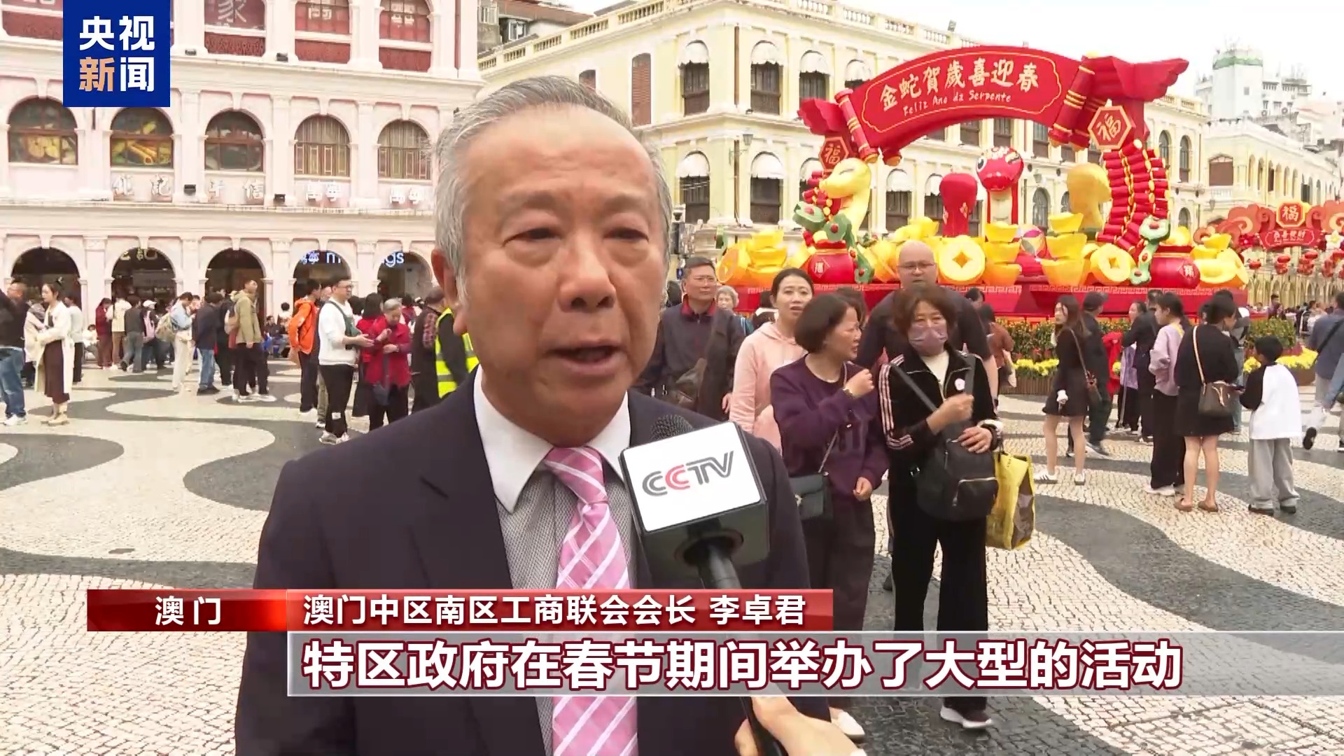 澳門中區(qū)南區(qū)工商聯(lián)會會長 李卓君:特區(qū)政府在春節(jié)期間舉辦了大型的活動,比如花車巡游、煙花表演以及金龍獻瑞巡游,都讓游客很有新鮮感。