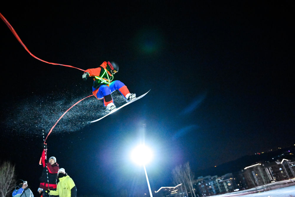 滑雪愛(ài)好者在進(jìn)行滑雪趣味跳高賽 顏麟蘊(yùn) 攝