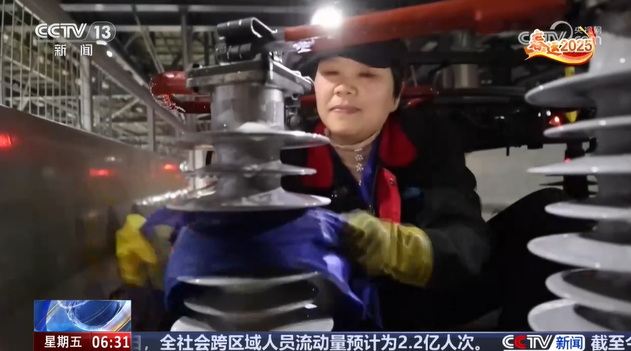 大面積的車皮清洗,最耗費的是體力,而車頂?shù)脑O(shè)備清潔,則更考驗細心和耐心。保潔員們正在擦拭的是位于動車組頂端的絕緣子。在動車組行駛的過程中,這部分設(shè)備用于給列車提供電力來源,一旦粘上各種灰塵、蟲膠等臟東西而導(dǎo)致接觸不良,就有可能影響列車用電。保潔員徐蘇連用絨布在凹凸不平的絕緣子表面一層一層地輕輕擦拭。