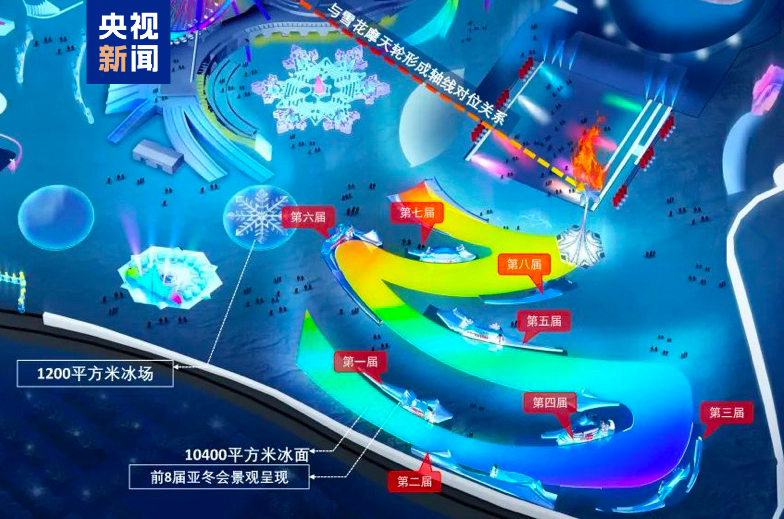 崔師堯介紹,“整個(gè)冰面有一個(gè)方向性色彩的律動(dòng),配合冰道兩邊往屆亞冬會(huì)的元素,讓人仿佛進(jìn)入了一個(gè)流光溢彩的時(shí)光隧道?!睔v史與當(dāng)代、過去與現(xiàn)在、小朋友與冠軍火炬手,在這一刻仿佛看到了傳承和發(fā)展。
