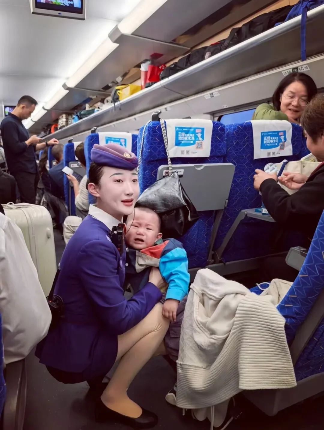 中國鐵路濟(jì)南局集團(tuán)有限公司青島客運(yùn)段北京動車隊的賈雯乘務(wù)員,耐心地幫助旅客安撫哭鬧的孩子,讓我在新的一年感受到了列車上的溫馨與真情。