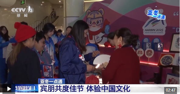 總臺央視記者 王晨:我現(xiàn)在是在位于哈爾濱亞冬會運動員村的一樓展廳,這里正在舉行“冰雪同夢·亞洲同心”非物質(zhì)文化遺產(chǎn)展示活動。今天是開幕式后的第五個比賽日,展示活動持續(xù)進行中,有金漆技藝、方正剪紙、木雕重彩、皮影戲等非遺代表性項目展臺。
