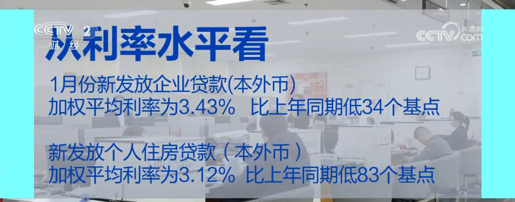 從利率水平看,貸款利率繼續(xù)保持在歷史低位。1月份,新發(fā)放企業(yè)貸款(本外幣)加權(quán)平均利率為3.43%,比上年同期低34個(gè)基點(diǎn);新發(fā)放個(gè)人住房貸款(本外幣)加權(quán)平均利率為3.12%,比上年同期低83個(gè)基點(diǎn)。