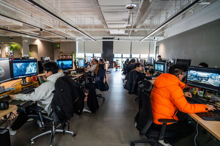 2月10日,墨境天合成都數(shù)字圖像科技有限公司的工作人員在制作動(dòng)畫效果。新華社記者 薛晨 攝