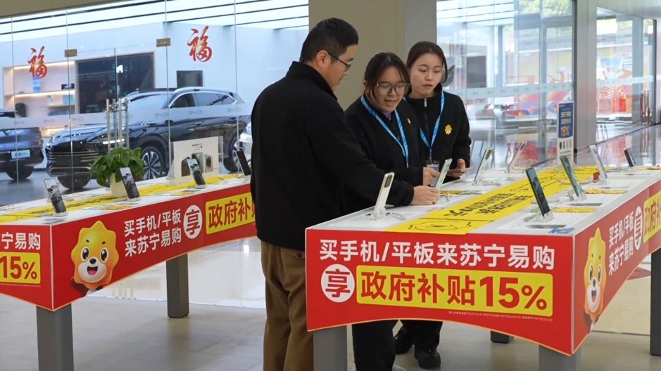 “以舊換新咨詢的比較多的是手機(jī)這一塊。因為手機(jī)、平板和智能手環(huán)這一塊是新增的補(bǔ)貼?!碧K寧易購廣西三祺廣場店店長 廖永寧表示。