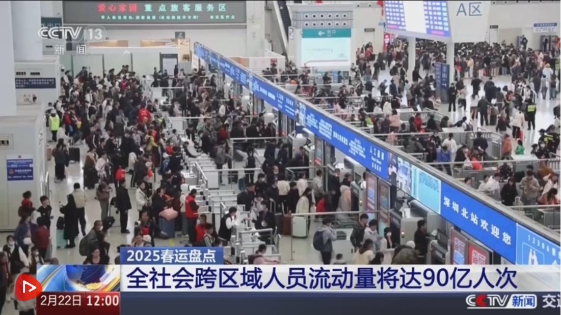 歷時(shí)40天的2025年春運(yùn)2月22日將結(jié)束。今年春運(yùn)從1月14日開始,多項(xiàng)數(shù)據(jù)創(chuàng)歷史新高。交通運(yùn)輸部預(yù)計(jì),整個(gè)春運(yùn)期間,全社會(huì)跨區(qū)域人員流動(dòng)量將達(dá)90億人次。