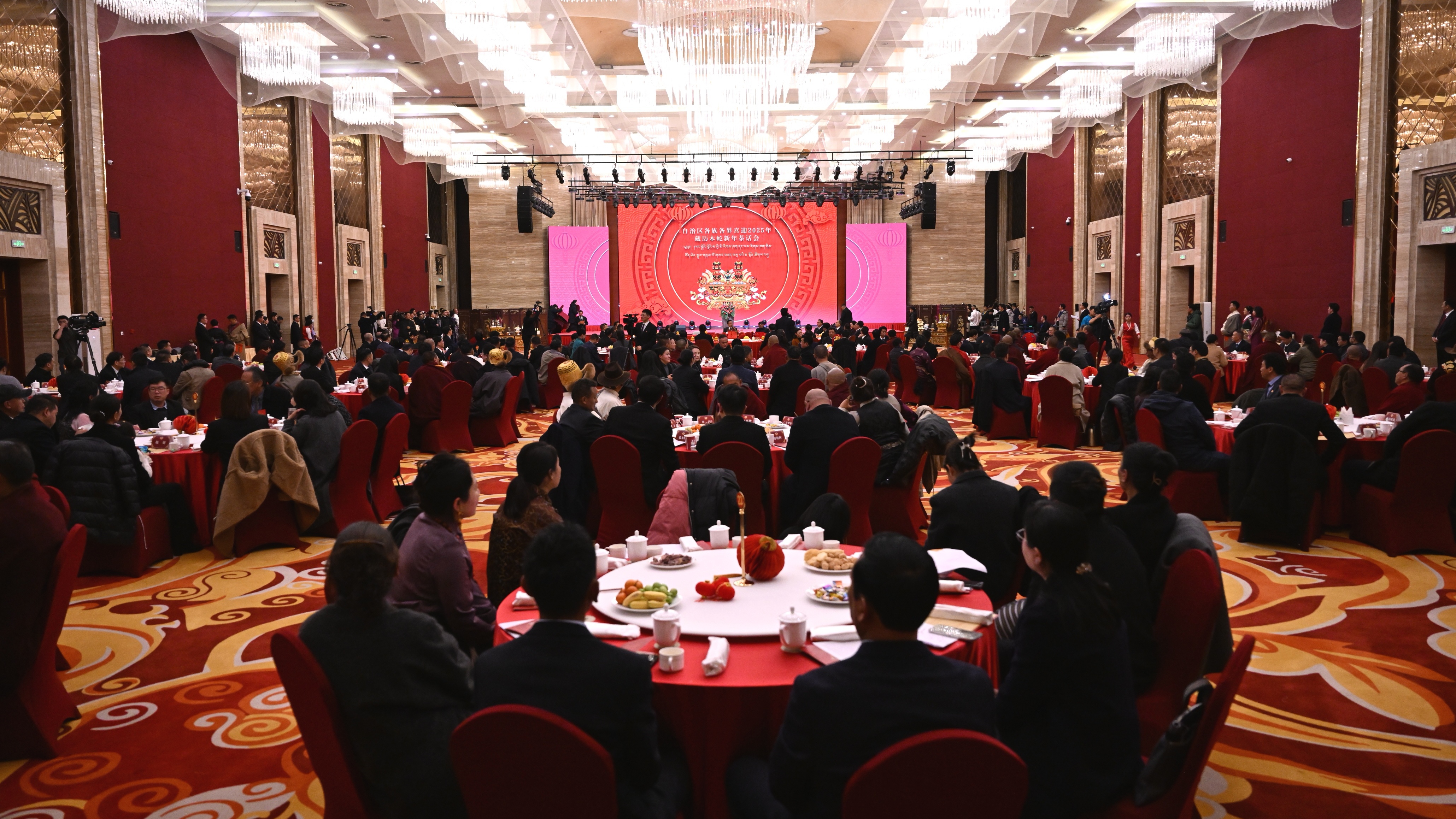 近日,西藏自治區(qū)各族各界喜迎2025年藏歷木蛇新年茶話會在拉薩舉行。這是茶話會現(xiàn)場。記者 旦增西旦 攝