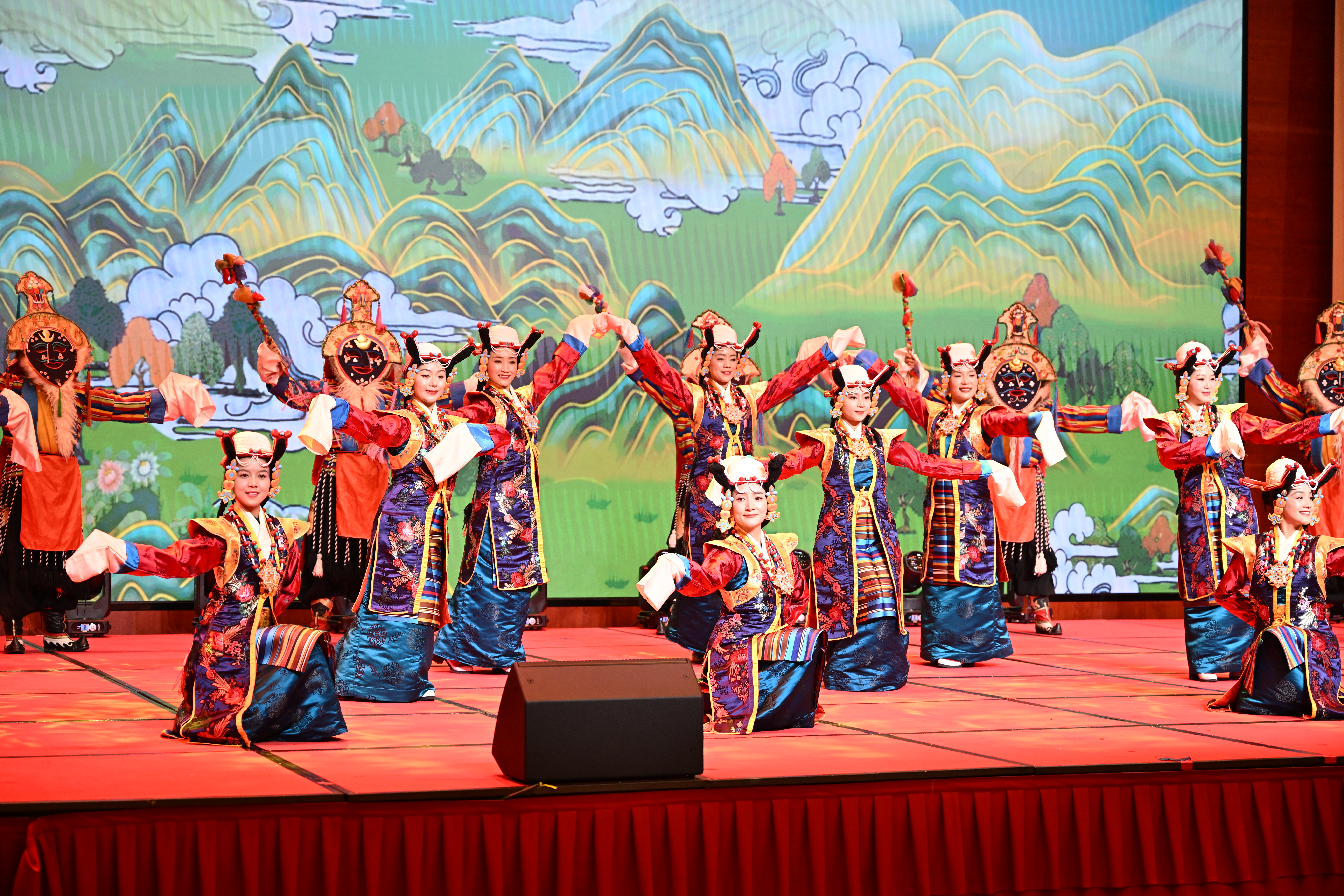 近日,西藏自治區(qū)各族各界喜迎2025年藏歷木蛇新年茶話會在拉薩舉行。這是文藝工作者正在表演節(jié)目。記者 旦增西旦 攝