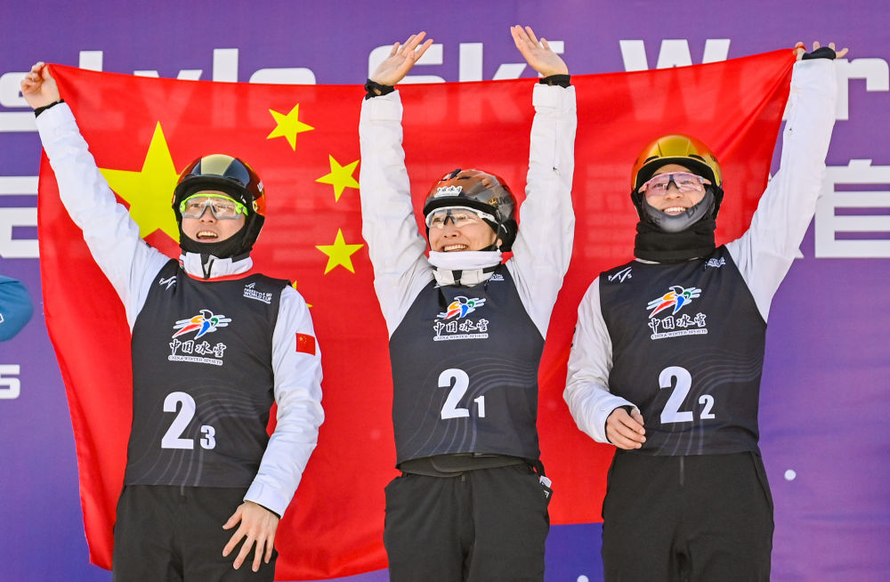2月22日,2024-2025賽季國際雪聯(lián)自由式滑雪世界杯(北大湖站)雪上技巧女子雙人比賽在吉林市北大湖滑雪度假區(qū)舉行。新華社記者 顏麟蘊 攝