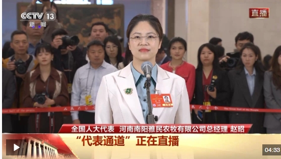 今天(3月11日),十四屆全國人大三次會議第三場“代表通道”在人民大會堂舉行,全國人大代表、河南南陽雅民農牧有限公司總經理趙昭接受了中央廣播電視總臺記者采訪。