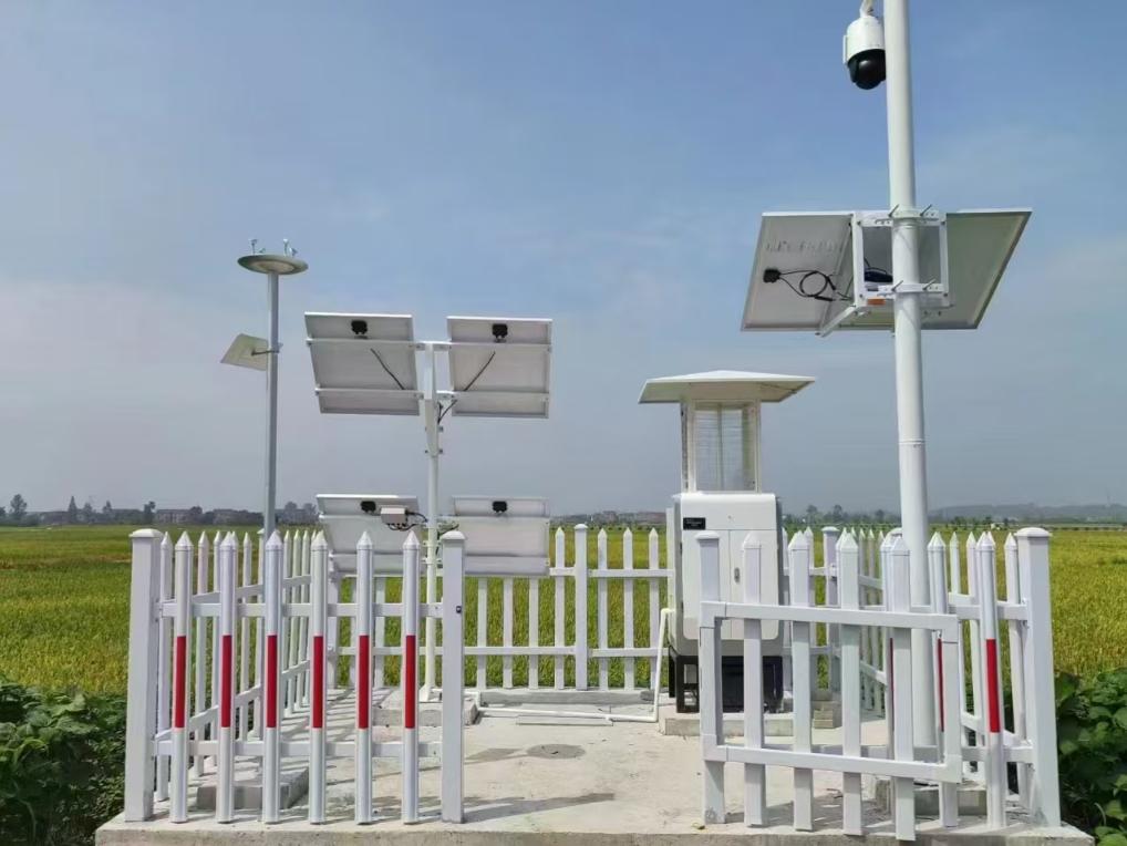 常德市桃源縣金鳳橋村智慧農(nóng)田里的氣象觀測站和智能蟲情測報站。(受訪者供圖)