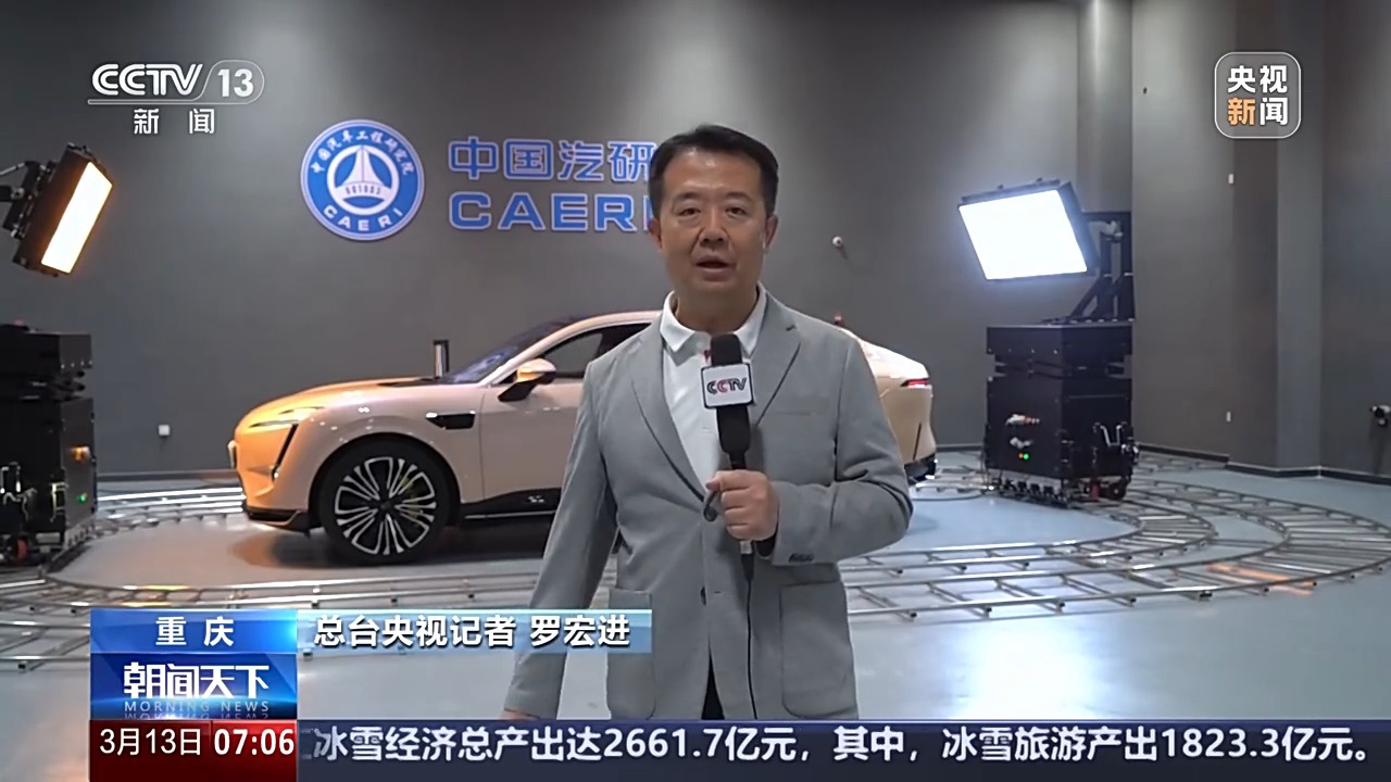 總臺(tái)央視記者 羅宏進(jìn):來(lái)到中國(guó)汽車工程研究院的整車光環(huán)境實(shí)驗(yàn)室,我們可以看到,我身后有兩臺(tái)能夠360°移動(dòng)的光源,它可以模擬一年四季一天24小時(shí)不同時(shí)刻的光線。智能網(wǎng)聯(lián)新能源汽車的快速發(fā)展,車上攝像頭的數(shù)量明顯增加,就好比人的眼睛一樣,要給它們進(jìn)行精準(zhǔn)的檢測(cè)。