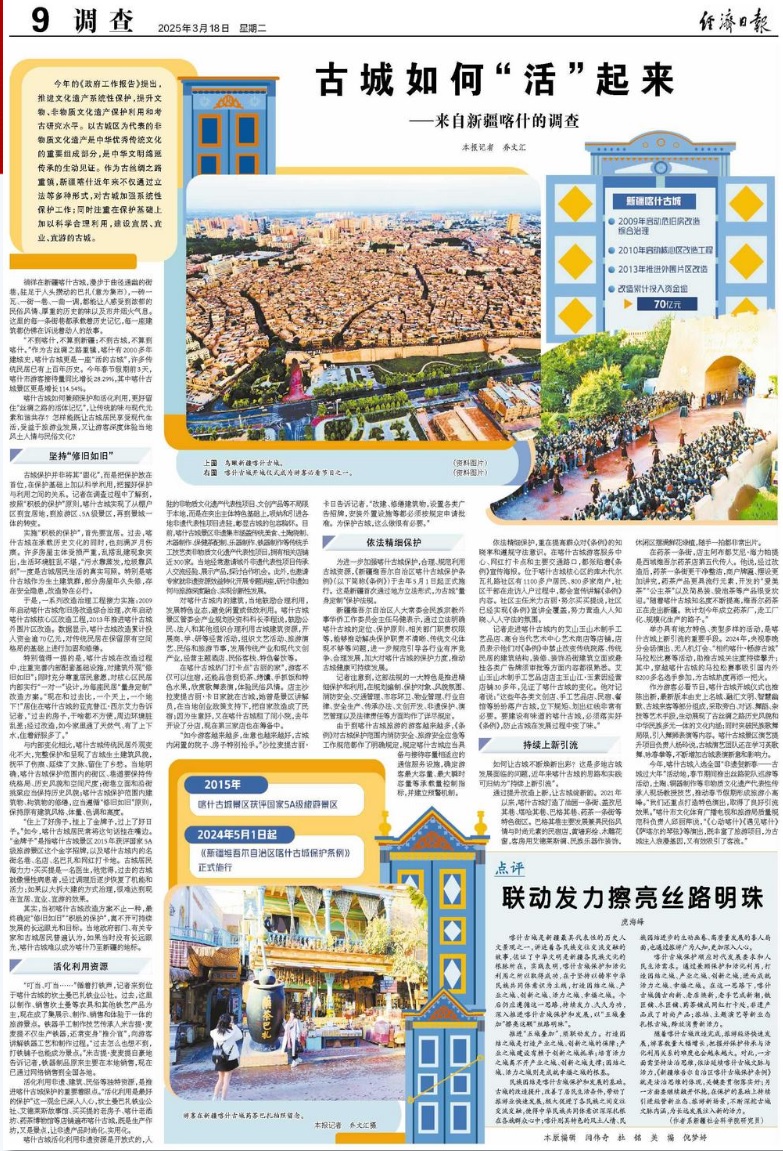 今年的《政府工作報告》提出,推進文化遺產系統(tǒng)性保護,提升文物、非物質文化遺產保護利用和考古研究水平。以古城區(qū)為代表的非物質文化遺產是中華優(yōu)秀傳統(tǒng)文化的重要組成部分,是中華文明綿延傳承的生動見證。作為古絲綢之路重鎮(zhèn),新疆喀什近年來不僅通過立法等多種形式,對古城加強系統(tǒng)性保護工作;同時注重在保護基礎上加以科學合理利用,建設宜居、宜業(yè)、宜游的古城。