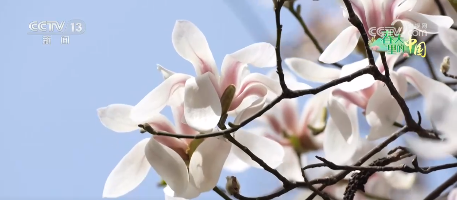 首先,跟隨鏡頭來到空中視角——碧綠的垂柳、清澈的泉水,還有格外搶眼的、潔白的春花。它究竟是誰呢?接下來,把視線拉回到地面。原來是公園里的望春玉蘭已經(jīng)掛滿了枝頭,為市民游客們帶來春天的氣息。望春玉蘭又叫望春花、迎春樹,作為濟(jì)南春天最早綻放的木蘭屬植物,被很多市民游客當(dāng)做賞花季開始的信號。在色彩上,望春玉蘭既非純白的白玉蘭,又不像鮮艷的紫玉蘭,而是呈現(xiàn)出一種由紫到白的漸變色,這種色彩仿佛從花的基部逐漸滲透出來,顯得淡雅別致。每當(dāng)春風(fēng)拂過,這里便會有暗香浮動,讓春天的氣息既能看得見,又能聞得著。