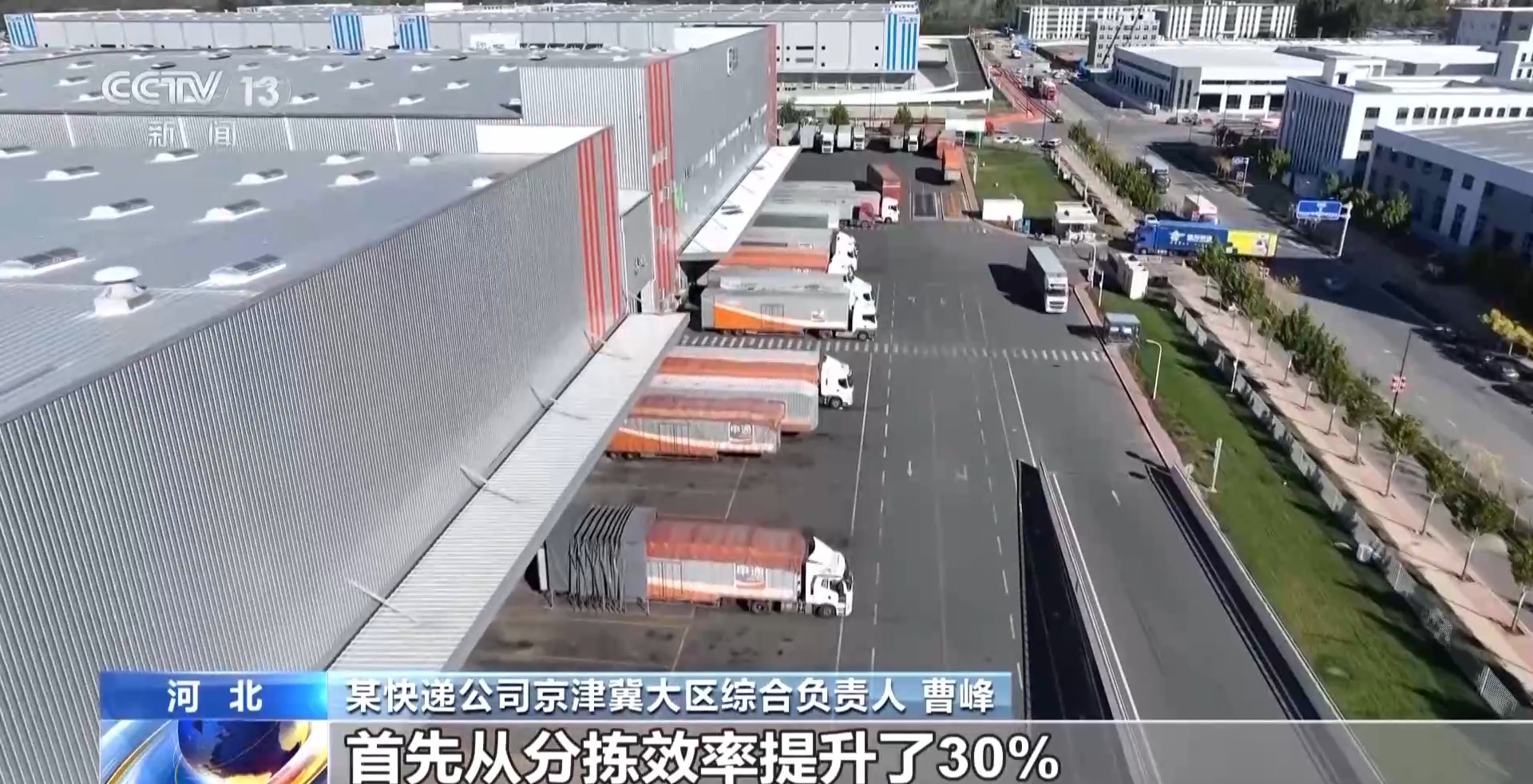 在廊坊固安的這家快遞公司華北轉(zhuǎn)運中心,近百個進出港卸貨口同時操作,全鏈路數(shù)智化設備同步運轉(zhuǎn)。大量快遞包裹在運輸帶上被快速掃描、分揀,整個過程都在智能管理系統(tǒng)的調(diào)配下完成,最快僅需10分鐘便可完成裝車。