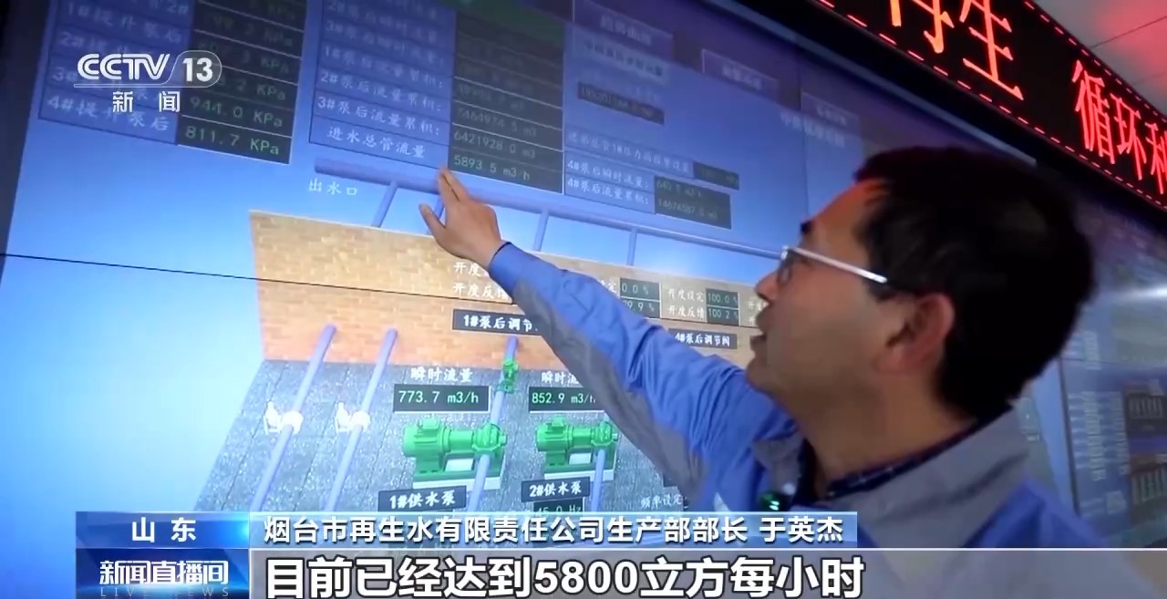 煙臺(tái)市再生水有限責(zé)任公司生產(chǎn)部部長(zhǎng) 于英杰:萬華工業(yè)園區(qū)供水的實(shí)時(shí)流量顯示,目前已經(jīng)達(dá)到5800立方/小時(shí),全天累計(jì)14.5萬立方。