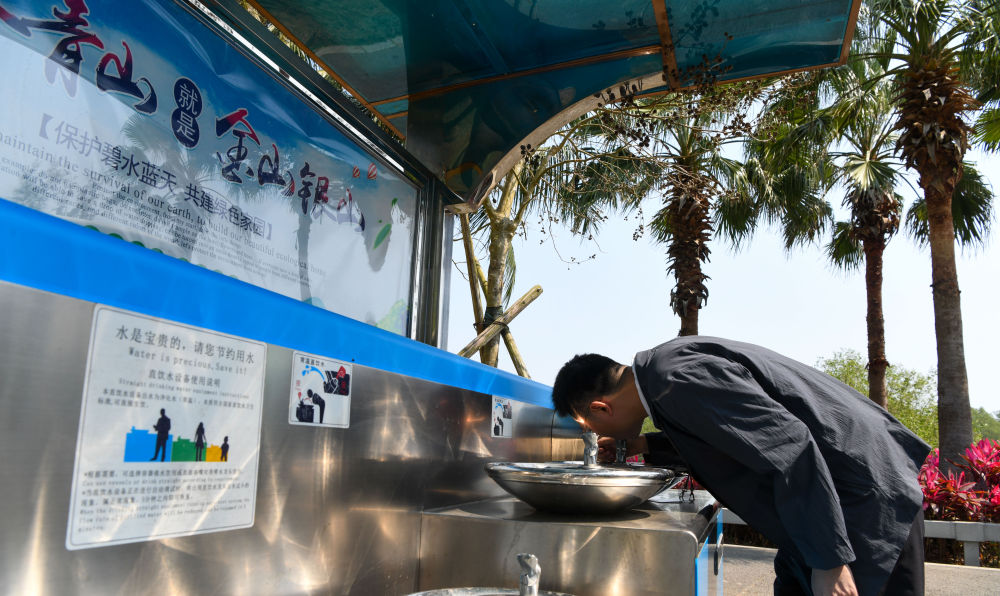 3月25日,參會(huì)人員在博鰲零碳示范區(qū)飲用常溫直飲水。