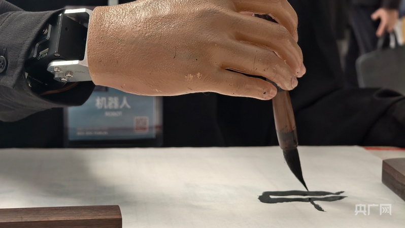 佩戴“工牌”的機(jī)器人(央廣網(wǎng)記者 朱冠安 攝)