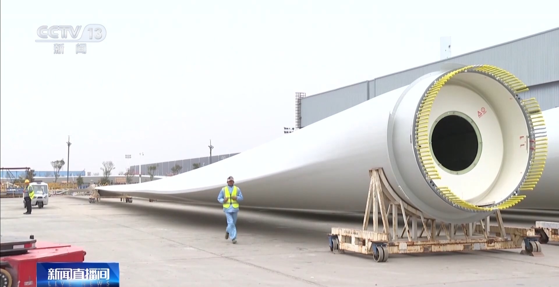 射陽中車風(fēng)電葉片工程有限公司工藝副經(jīng)理 梁冰:這些葉片的測試結(jié)果符合設(shè)計要求,即將發(fā)往風(fēng)電企業(yè)進(jìn)行安裝,這也是我國首套可回收熱固性樹脂的風(fēng)機(jī)葉片。等到它到達(dá)了使用年限之后,可以將玻纖與樹脂進(jìn)行分離,其中玻纖的回收率可以達(dá)到85%以上。