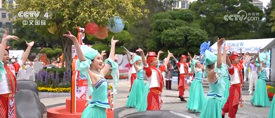 在玉林市玉州區(qū)鵬垌村,廣場的竹竿迎客舞吸引不少游客互動。非遺展區(qū)內還展示了手工香囊、版畫、漆扇等傳統(tǒng)手工藝,游客們紛紛駐足欣賞并參與體驗,感受傳統(tǒng)文化的魅力。