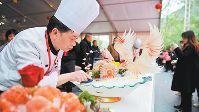 在四川南充舉辦的火鍋美食文化活動上,火鍋企業(yè)的大廚為觀眾呈現(xiàn)出一道道美食菜肴。余中華攝 中央經(jīng)濟工作會議提出,“擴大服務消費”。當前,服務消費需求加速釋放,新場景新業(yè)態(tài)新模式不斷涌現(xiàn),供需“雙向奔赴”激發(fā)市場新活力。本版今起推出“服務消費一線探訪”系列報道,聚焦餐飲、健康、文創(chuàng)、住宿等重點領域,深入部分省份調(diào)研探訪,剖析服務市場供需新特點、新趨勢,探討擴大服務消費新舉措。 ——編 者 春熙路、寬窄巷子、錦里古街……成都街頭人來人往;回鍋肉、麻婆豆腐、宮保雞丁……川菜館中香氣四溢。川菜作為中國八大菜系之一,擁有悠久的歷史和豐富的文化內(nèi)涵。成都是川菜的發(fā)源地之一,被聯(lián)合國教科文組織評選為“世界美食之都”。 今年的《政府工作報告》將“大力提振消費、提高投資效益,全方位擴大國內(nèi)需求”放在十大任務之首。民以食為天,餐飲業(yè)是提振消費的一個重要抓手。以麻辣鮮香為特點的川菜,餐飲文化豐富多樣,融合傳統(tǒng)與創(chuàng)新,在新消費趨勢下發(fā)展迅速。早春時節(jié),記者來到成都大街小巷,探訪餐飲業(yè)如何增加優(yōu)質(zhì)供給,加快創(chuàng)新升級,滿足市場需求。 菜品創(chuàng)新,豐富川菜口味 起鍋燒油,倒肉末,至色呈黃,再加蒜末、豆豉炒香,緊接著下豆腐,文火收汁,加入蒜苗。在成都交子公園附近的一家川菜館內(nèi),總廚鄧偉動作行云流水。他邊調(diào)整火候邊說:“起鍋時,還得撒點花椒,本地產(chǎn)的,這可是麻婆豆腐‘麻’味的精華!” 郫縣豆瓣、漢源花椒、安格斯牛肉,看似簡單的一道麻婆豆腐,實則頗有講究,盡顯川菜百味。在鄧偉看來,既要堅守傳統(tǒng)川菜風味,又要結(jié)合時代變遷和人們口味的變化,不斷守正創(chuàng)新,“春吃芽,夏吃瓜,秋吃果,冬吃根。川菜有魚香、麻辣、姜汁等24種味型,我們在創(chuàng)新菜品時,會精選食材,反復試味。” 怪味牛小排,麻辣鮮香甜,煎制后的牛肉一口咬下,汁水四溢?!皞鹘y(tǒng)川菜中的怪味,一般多用于涼菜,我們則創(chuàng)新到熱菜上使用,從選取食材到烹飪手法,多次試驗。”鄧偉說,反復調(diào)整了10多天,這才制成怪味牛小排,新菜一經(jīng)推出,就獲得好評。陳釀豆瓣銀鱈魚、糯米樟茶鴨……在他手中,傳統(tǒng)川菜有了更多創(chuàng)意。 記者走進另一家位于成都錦江區(qū)水井坊的川菜店,熊貓文創(chuàng)小吃展臺映入眼簾,熊貓造型的點心各式各樣,軟糯可愛。傍晚6點,從馬來西亞來成都旅游的一家人特意趕來,打卡地道川菜。餐前,弟弟杰克第一時間把拍攝的糖油果子短視頻發(fā)到社交媒體,分享給網(wǎng)友。而熊貓造型的甜點“天府鮮果熊貓”,讓杰克“心都化了”,留到最后才舍得吃。 “春天,我們制作熊貓青團,餡料選的是宜賓產(chǎn)的芽菜。夏季,鮮果熊貓的食材就用來自龍泉驛的水蜜桃,到了秋天,攀枝花的芒果必不可少?!痹撻T店負責人許凡介紹,除深耕傳統(tǒng)川菜外,他們還創(chuàng)新菜品,熊貓造型的文創(chuàng)小吃吸引不少游客,讓游客們既能打卡熊貓文創(chuàng),又能品嘗川菜。 近年來,川菜頻頻出圈,以調(diào)味多變、菜式多樣俘獲了眾多美食愛好者的心,紛紛趕來成都體驗。當下,成都正深入挖掘川菜發(fā)展新模式,以川菜吸引更多人前來生活旅游,通過“傳承+創(chuàng)新”提升川菜吸引力。 “通過加強美食品牌培育,全市有20家餐廳上榜‘2025黑珍珠餐廳指南’,73家餐廳上榜‘2025成都米其林指南’?!背啥际猩虅站窒嚓P負責人介紹,老字號也得守正創(chuàng)新,目前成都共有四川老字號67個,中華老字號23個,涵蓋了飲食、川調(diào)等多個品類。成都餐飲消費提質(zhì)擴容,國際美食之都的“金字招牌”越擦越亮,2024年,成都餐飲收入1933.7億元,同比增長6.2%。 “川菜一直在融合發(fā)展的路上,人口流動推動生活方式、飲食文化的融合,川菜通過融合更有生命力。要提振川菜消費,還要繼續(xù)推動川菜融合創(chuàng)新?!敝袊埖陞f(xié)會名廚專業(yè)委員會常務副主席、川菜文化全球推廣大使邱克洪說,“川菜烹飪技法和味型比較豐富。交通閉塞的時候,川菜食材相對匱乏,現(xiàn)在我們把各地新食材引入川菜,給消費者提供不同的舌尖體驗?!?/p> 豐富場景,改善消費體驗 每到3月,賞花是不少市民游客的“固定節(jié)目”。春花爛漫,美食正鮮,在成都崇州隆興鎮(zhèn)梁景村,一頂頂白色帳篷散落在黃燦燦的油菜花海中。遠處藍天白云,近處油菜花金黃?;ㄌ镩g,火紅的鍋底沸騰,毛肚、蝦滑、牛肉一股腦兒放進鍋中,火鍋的辛香和著花海的芬芳瞬間撲鼻而來。 “全村有1400多畝油菜花田,每年一到3月份,來觀賞油菜花的游客就多了起來,周末村里一天能接待好幾萬人?!绷壕按妩h委書記張建軍說,“游客在我們這兒,除了能把春天收藏在相冊中,還能把春天煮進火鍋里。村里聯(lián)合企業(yè)推出花田火鍋,創(chuàng)新消費場景,豐富消費體驗?!?/p> “每年3月都是旺季,大家喜歡在花田里感受自然風光,我們就把火鍋和賞花結(jié)合了起來?!碧諠橇壕按寤ㄌ锘疱伒呢撠熑?,“我們的花田火鍋需要提前三天甚至一周預訂,平均每天能有40多桌,很多都是一大家子來的。”說話間,手機響起,電話那頭傳來了顧客預訂座位的聲音,陶濤趕緊拿起紙筆,