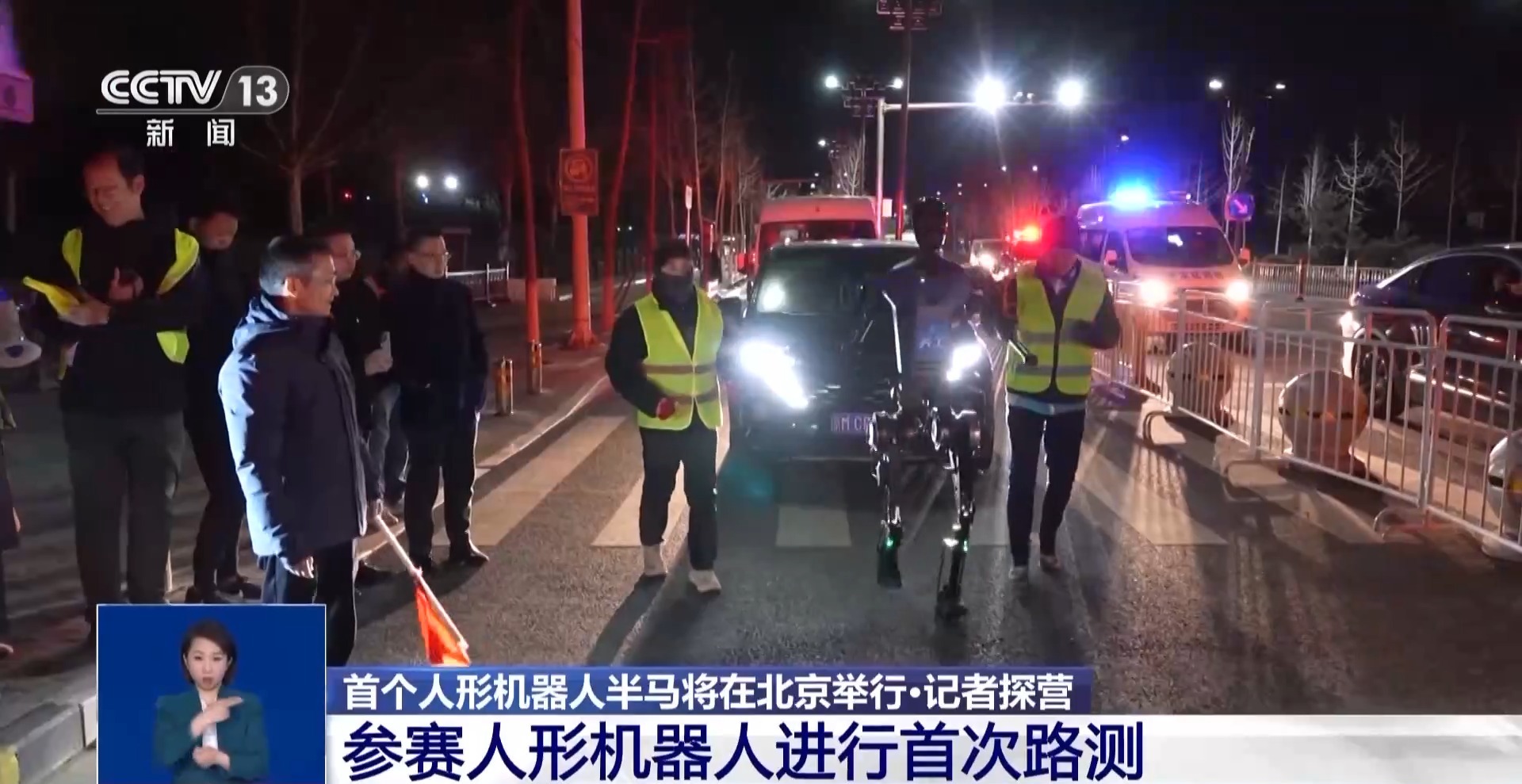 3月28日晚,在北京亦莊,報名參加北京亦莊半程馬拉松的機器人進行了第一次實地路面測試。
