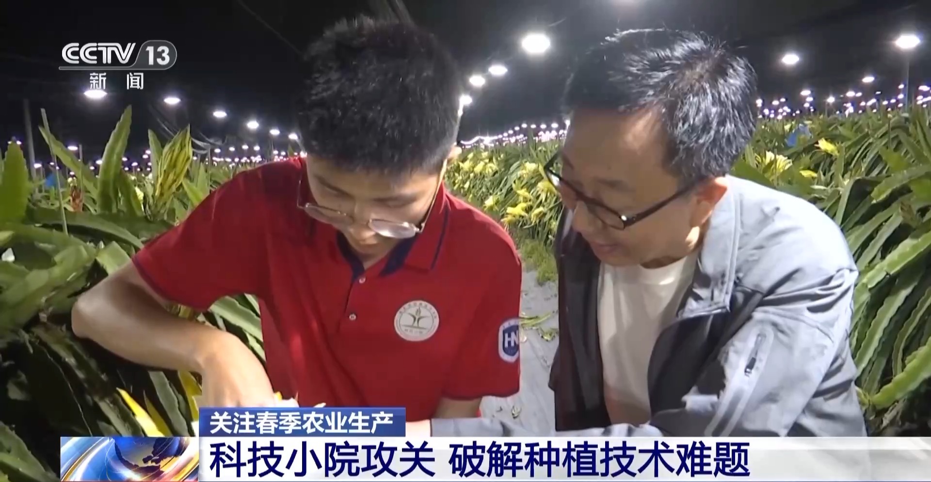 不僅僅是燕窩果,像傳統(tǒng)的熱帶水果火龍果的種植難題,也正在通過科技小院的技術得以攻破。晚上八點多,尖峰鎮(zhèn)方圓幾十里火龍果種植園區(qū)燈火通明,而夜晚點亮燈光的目的是給火龍果補光,讓枝條能夠長出花苞并順利開花?;瘕埞_花時間一般在晚上八點到十二點之間,為此科技小院的技術人員還研發(fā)了可以短時間完成授粉的技術模式。