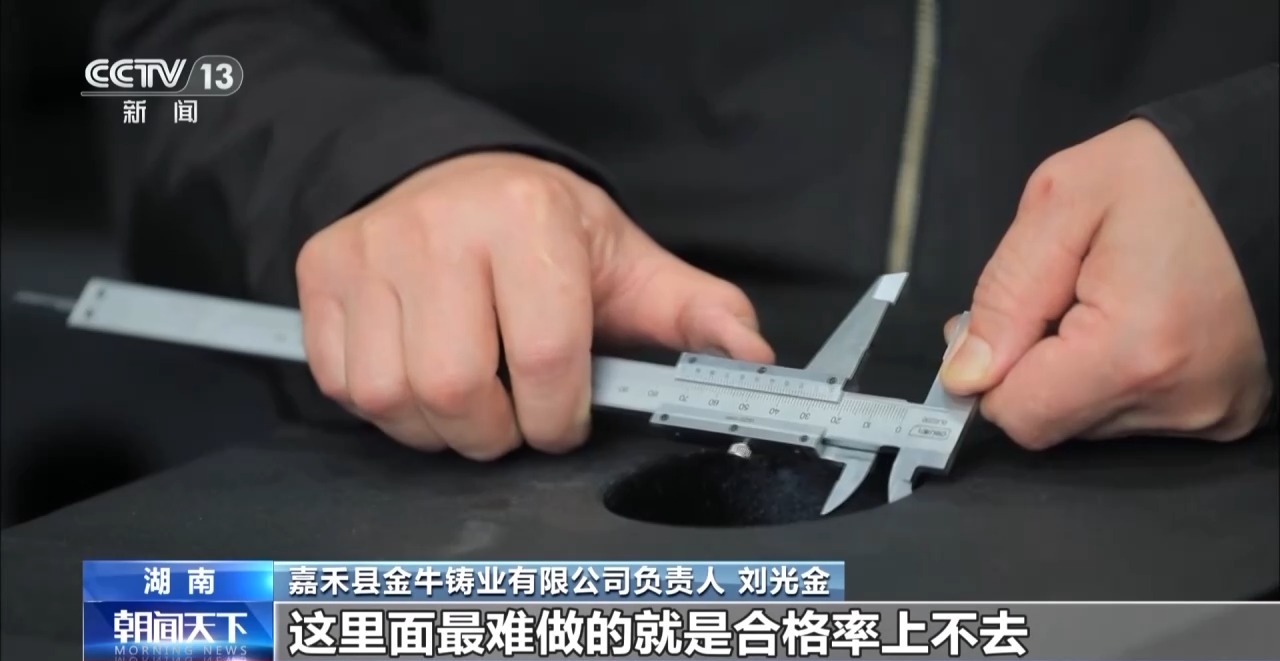 湖南嘉禾縣金牛鑄業(yè)有限公司負(fù)責(zé)人 劉光金:以前我們生產(chǎn)“小五金”的時(shí)候一年就3000來(lái)萬(wàn)元,到了2023年的時(shí)候,這種低端產(chǎn)品市場(chǎng)逐漸飽和。那一年我們的營(yíng)業(yè)額直接下降了一半,這個(gè)時(shí)候企業(yè)如果不換賽道的話,被淘汰那就是早晚的事情。